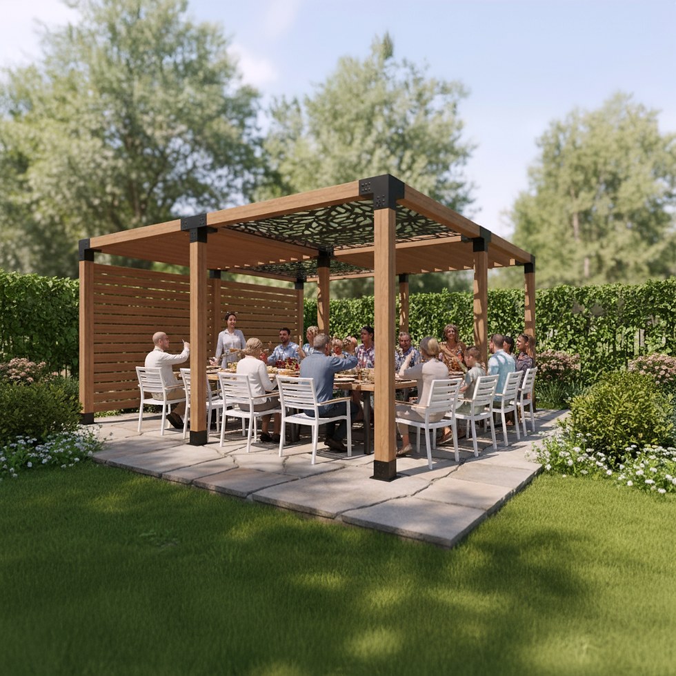 Avec leur format généreux, nos pergolas quadruples créent un espace extérieur majestueux, parfait pour les réceptions, les zones lounge ou les aménagements paysagers d’envergure. Leur structure solide et leur design élégant offrent à la fois ombre, confort et impact visuel. Idéales pour transformer un grand espace en véritable lieu de vie à ciel ouvert.